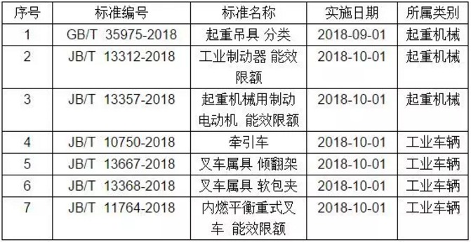 國家標準公告(2018年第2號文件)“關(guān)于批準發(fā)布291項國家標準的公告”及中國機械工業(yè)聯(lián)合會文件(中機聯(lián)標【2018】50號)“關(guān)于發(fā)布70項機械行業(yè)標準的通告”其中有關(guān)“起重機械”和“工業(yè)車輛”新批準頒布的標準內(nèi)容如下: